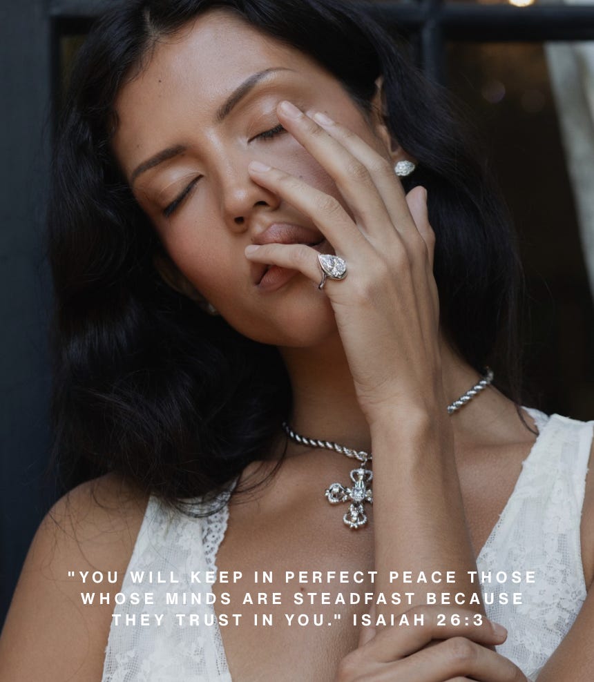 Wear it as a reminder that His peace is already yours. Shop the Promise Pinky Ring or shop all of our scripture inspired pieces.